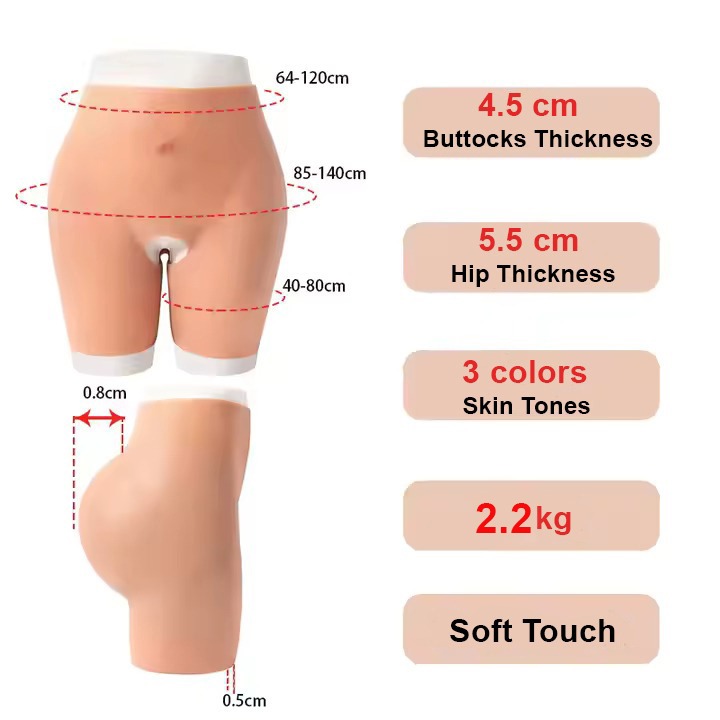 •  Ultra-Realistic & Comfortable Silicone Design: Made from premium medical-grade silicone, these hips silicone panty mimic real skin with a soft, elastic, and tear-resistant texture. Hypoallergenic, odorless, and reusable for long-lasting wear.